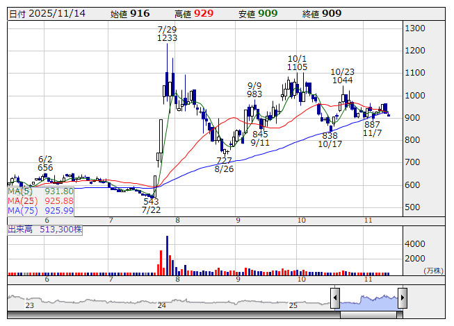 発行済み株式数(自社株を除く)の0.7%にあたる5万株(金額で4500万円)を上限に自社株買いを実施する。買い付け期間は11月25日から26年5月14日まで。
