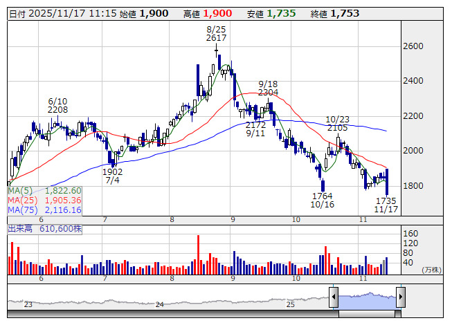 エムアップ <日足> 「株探」多機能チャートより