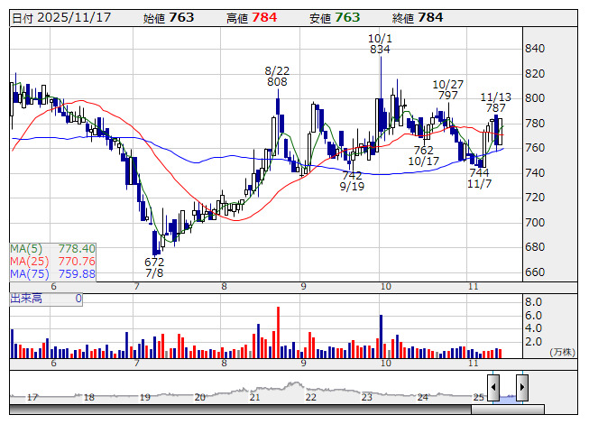 6533>はストップ高の水準となる934円でカイ気配となっている。前週末14日の取引終了後、25年12月期第3四半期累計(1~9月)の連結決算を発表した。売上高が117億4800万円(前年同期比15.8%増)、最終利益が6億1700万円(同7.1%増)だった。同時に中長期的な株式保有の促進を目的とした株主優待制度の新設を開示しており、12月末を基準日として200株以上を1年以上にわたり継続保有する株主に1万5000円相当のデジタルギフトを贈呈する。業況と株主還元姿勢を評価した買いが集まっている 主力のデジタルトランスフォーメーション事業は、ソフトウェアテスト事業の成長とM&Aによりグループ化した企業2社の業績貢献を受け、大幅な増収増益となった。