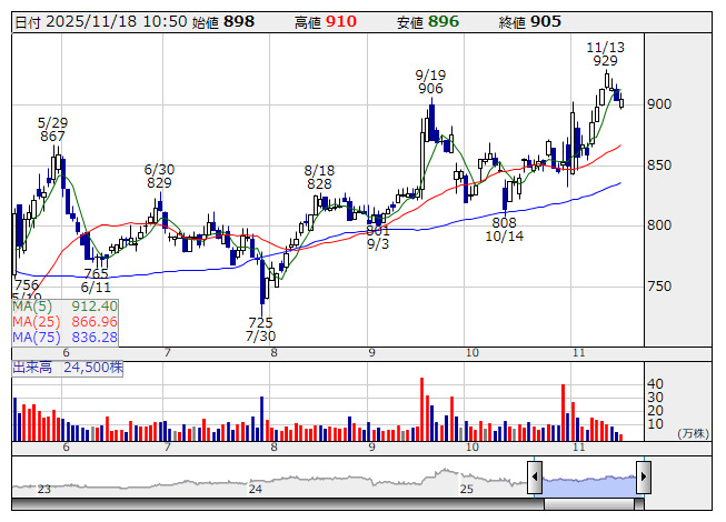 いちよし <日足> 「株探」多機能チャートより■財務省 : 11月18日受付