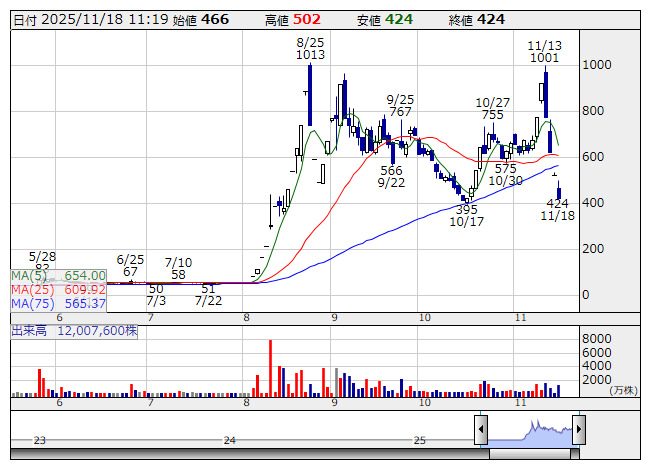 【材料】前場のランキング【値下がり率】 (11月18日)