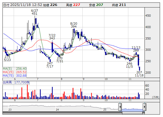 Aクリエイト <日足> 「株探」多機能チャートよりアドバンスクリエイト<8798>は14日、2025年9月期の連結決算において、為替相場の変動により円高が進行したことを受け、営業外費用として為替差損0.34億円を計上したと発表した。