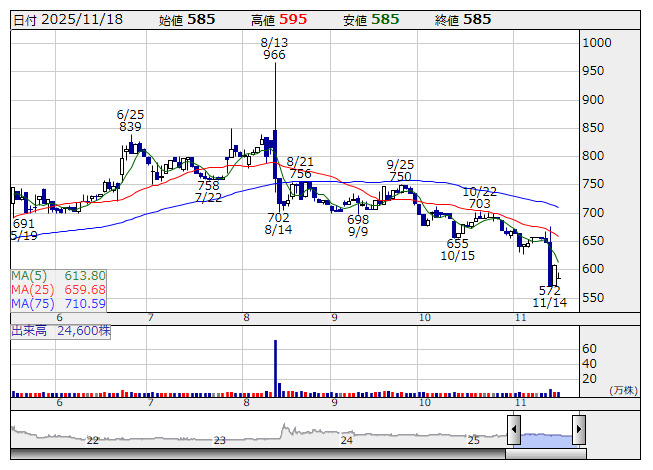 メイホーHD <日足> 「株探」多機能チャートよりメイホーホールディングス<7369>は14日、2026年6月期第1四半期(25年7月-9月)連結決算を発表した。売上高が前年同期比10.4%減の25.72億円、営業損失が1.25億円(前年同期は0.36億円の損失)、経常損失が1.24億円(同0.56億円の損失)、親会社株主に帰属する四半期純損失が1.13億円(同0.75億円の損失)となった。