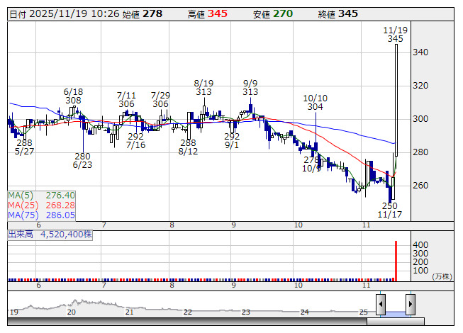 【材料】前場のランキング【値上がり率】 (11月19日)