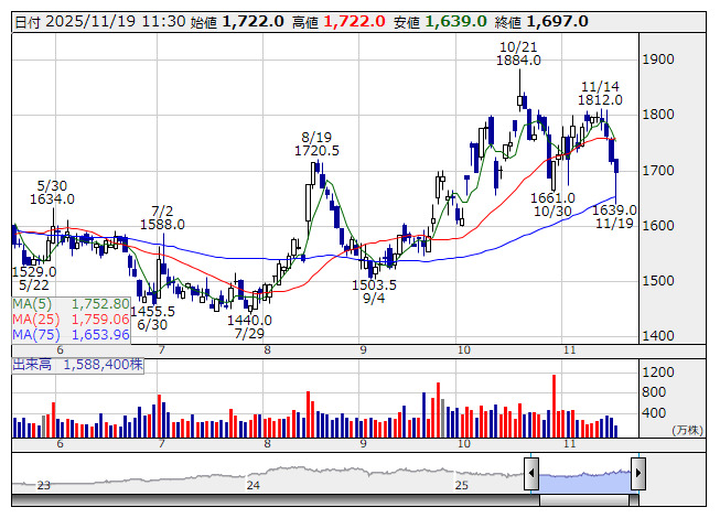 日本取引所 <日足> 「株探」多機能チャートより■財務省 : 11月19日受付