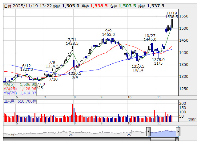 日化薬 <日足> 「株探」多機能チャートより