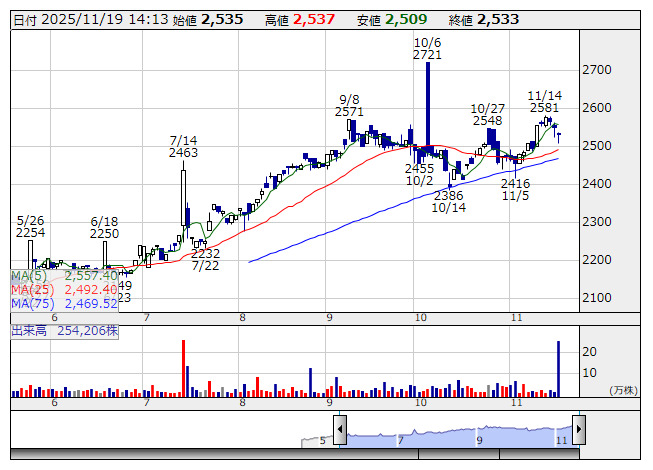 <3593> ホギメディ 275000 708916.8 74.43% 0.0088%