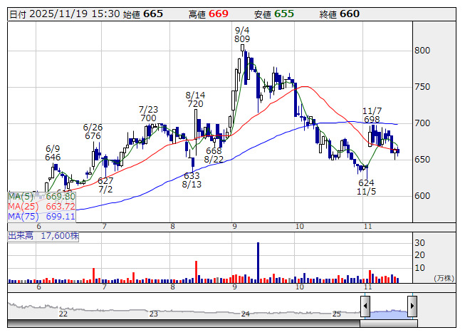 Zenken <日足> 「株探」多機能チャートより■財務省 : 11月19日受付