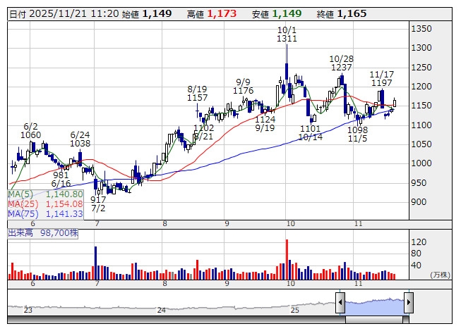 スターマイカ <日足> 「株探」多機能チャートより
