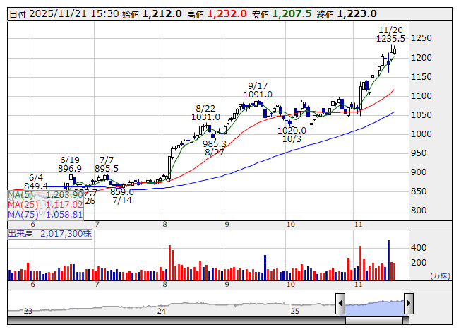 ニッスイ <日足> 「株探」多機能チャートより■財務省 : 11月21日受付