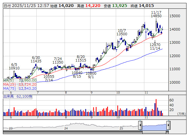 堀場製 <日足> 「株探」多機能チャートより協業の第1弾として、ホリバMIRAが運営する欧州最大級のモビリティ及びテクノロジー分野の研究開発拠点「MIRA Tech Park(マイラ テック パーク)」にあるテストコースを利用して自動運転バスの実証を開始。ティアフォーは自動運転システム、自動運転レベル4の基準に準拠した電気自動車の小型バス「Minibus(ミニバス)2.0」、各種センサー、運用支援など、ソフトウェアとハードウェア一式を提供するという。