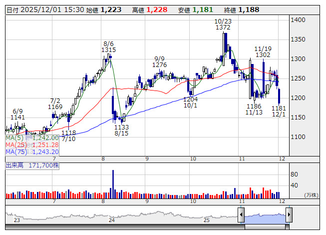発行済み株式数(自社株を除く)の1.91%にあたる30万株(金額で1億円)を上限に自社株買いを実施する。買い付け期間は12月2日から12月23日まで。