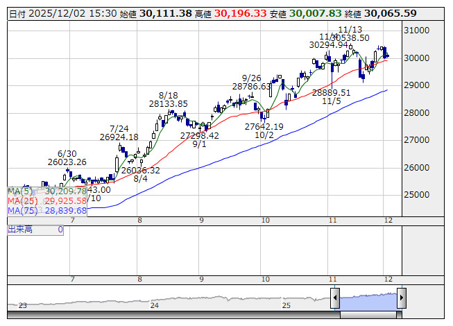 2025年12月02日15時47分 【市況】JPX日経400先物:2日清算値=110ポイント高、3万60ポイント JPX日経400 <日足> 「株探」多機能チャートより 2日15時45分、JPX日経インデックス400先物期近2025年12月限は前日清算値比110ポイント高の3万60ポイントで取引を終えた。出来高は2963枚だった。この日のJPX日経インデックス400の現物終値3万65.59ポイントに対しては5.59ポイント安。 株探ニュース