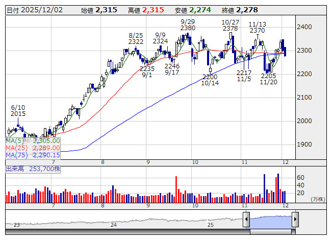 大日印 <7912> 2,677.5 +82.5 ( +3.2%) 11,400 ( 3,052) 11,300 ( 3,025)