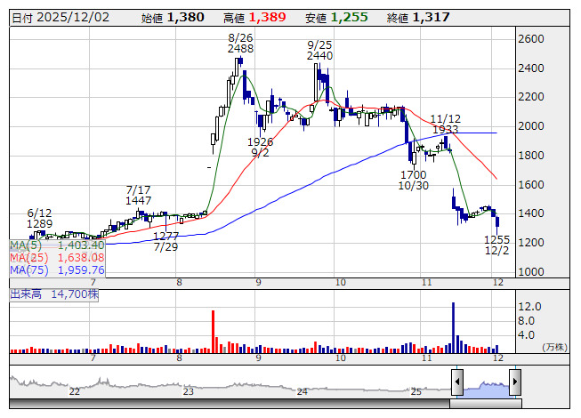 ブリッジG <9225> 1,285 +50 ( +4.0%) 100 ( 12) 100 ( 12)