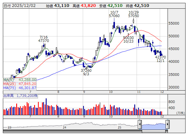 ディスコ <日足> 「株探」多機能チャートより(東証上場 4254 銘柄対象[ETF、REIT含む])