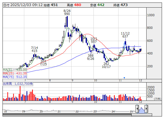 イオレ <日足> 「株探」多機能チャートより