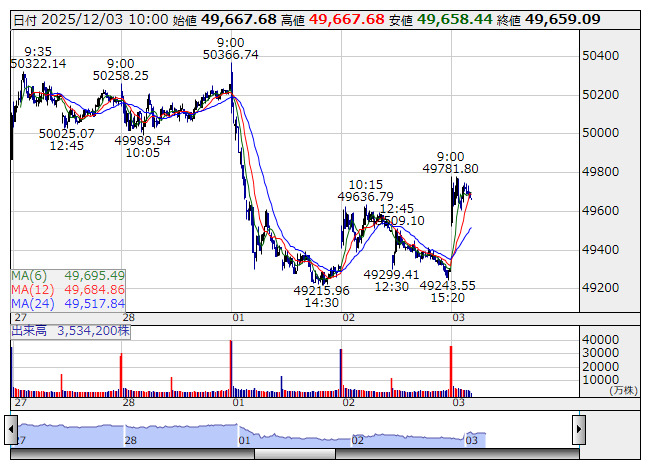 【市況】10時の日経平均は359円高の4万9662円、アドテストが243.34円押し上げ