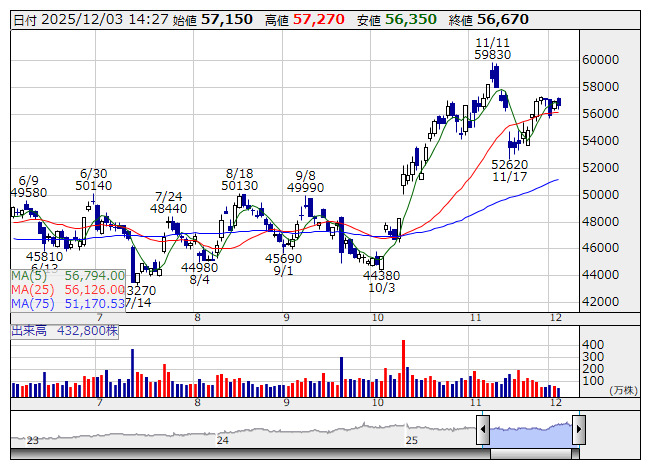 ファストリ <日足> 「株探」多機能チャートより