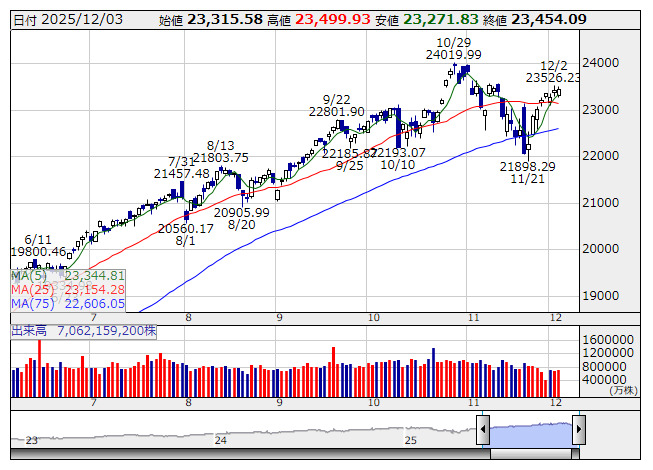 3日のNY市場は続伸。ダウ平均は408ドル高の47882ドルで取引を終え、S&Pとナスダックも小幅に上昇した。民間雇用統計の減少を受け、連邦準備制度理事会(FRB)が来週の会合で利下げに踏み切るとの見方が強まり、金融や消費関連株が買われた。金利低下観測が安心感を誘い、ユナイテッドヘルス・グループやゴールドマンなどが堅調。市場ではビットコインの回復も支援材料とされ、全体として買い戻しが優勢も、上値では利食い売りが見られた。