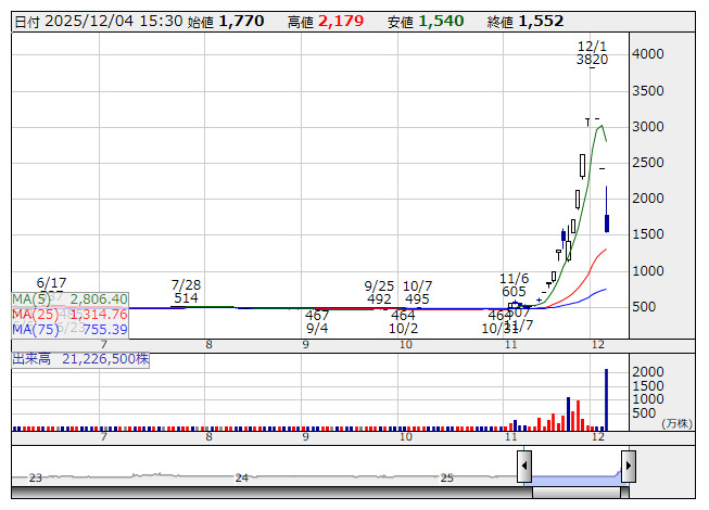 【材料】本日のランキング【値下がり率】 (12月4日)