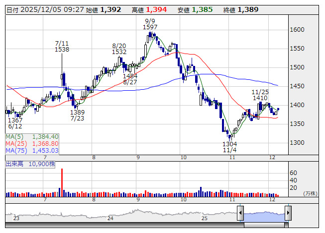 2025年12月05日09時40分 【材料】ブックオフGは続伸、11月既存店売上高が58カ月連続で前年上回る ブックオフG <日足> 「株探」多機能チャートより ブックオフグループホールディングス<9278>は続伸している。4日の取引終了後に発表した11月度の月次売上状況で、国内ブックオフ事業における既存店売上高が前年同月比11.1%増となり、58カ月連続で前年実績を上回ったことが好感されている。トレーディングカード・ホビー、アパレル、貴金属・時計・ブランドバッグ、書籍などが伸長した。なお、全店売上高は同10.9%増だった。 出所:MINKABU PRESS