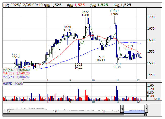 ケミファ <日足> 「株探」多機能チャートより■財務省 : 12月5日受付
