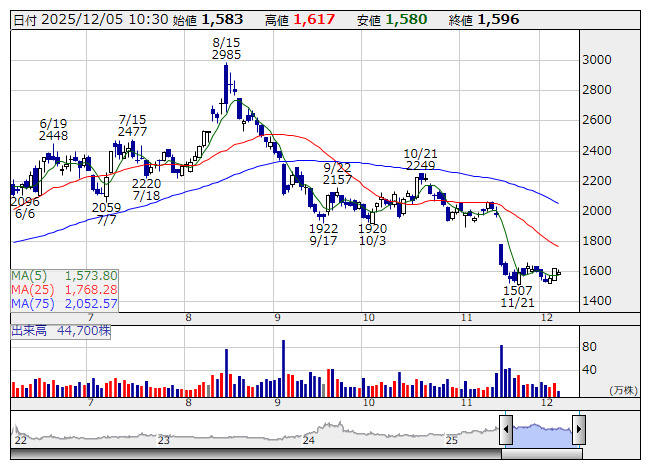 エフ・コード <日足> 「株探」多機能チャートより■財務省 : 12月5日受付
