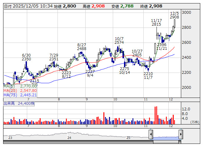 アバール <日足> 「株探」多機能チャートより■財務省 : 12月5日受付