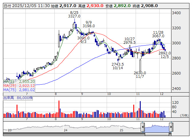 ダイワボウ <日足> 「株探」多機能チャートより■財務省 : 12月5日受付