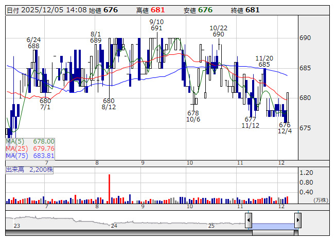 2025年12月05日14時40分 【材料】三洋堂HDがしっかり、11月既存店売上高が2カ月連続前年上回る 三洋堂HD <日足> 「株探」多機能チャートより 三洋堂ホールディングス<3058>がしっかり。午後2時ごろに発表した11月度の月次売上高で、直営既存店売上高が前年同月比10.0%増と2カ月連続で前年実績を上回ったことが好感されている。 出所:MINKABU PRESS