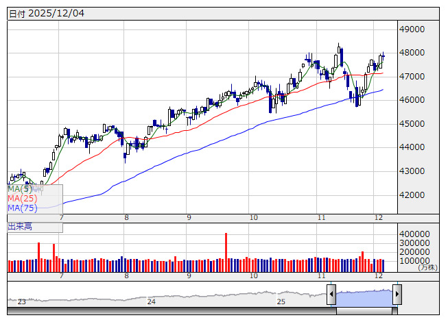 NYダウ <日足> 「株探」多機能チャートより●海外勢が現先合算で1612億円買い越す一方、個人は4528億円売り越す