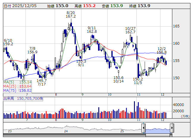 NTT <日足> 「株探」多機能チャートより●信用買い残減少ランキング【ベスト50】