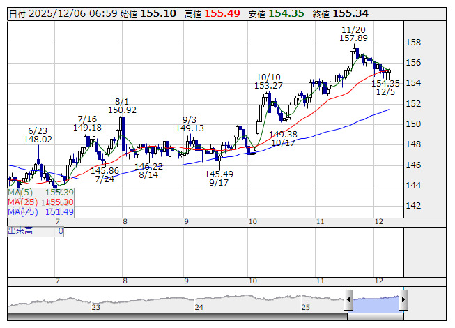 ドル・円は2025年の年初の158円87銭を付けた後は下げに転じ、米トランプ政権の一方的な関税引き上げを受けドル売り地合いに。4月には139円89銭と、昨年9月以来の安値を付ける場面もありました。ただ、ここ数年の支持線として機能した140円付近でサポートされます。足元は米追加緩和観測の後退によるドル買い、日本の財政懸念による円売りを背景に11月下旬に1月以来の水準まで戻しました。