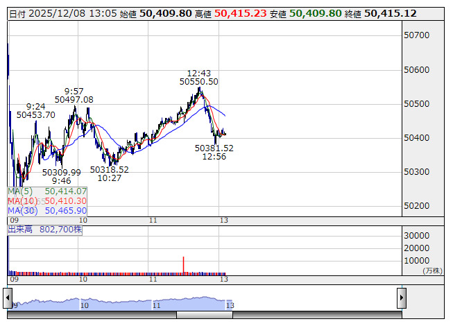 日経平均 <1分足> 「株探」多機能チャートより日経平均 : 50464.26 (-27.61)
