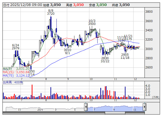 横ばい。26年8月期11月度直営店売上高速報、店舗数推移を発表した。直営店の店舗数は、前月と変わらずラーメン事業39店舗(前年同月比7店舗増)、レストラン事業37店舗(同5店舗増)だった。直営店全店の前年同月比売上高はラーメン事業で128.2%、レストラン事業で同120.0%となった。既存店の客数は前年同月比で両事業ともに減少したが、ラーメン事業では客単価が同103.7%、売上高は同100.9%、レストラン事業では客単価が同104.0%、売上高は同101.5%の水準となった。
