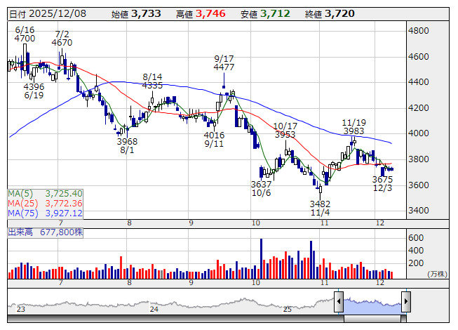 神戸物産 <日足> 「株探」多機能チャートより神戸物産<3038>