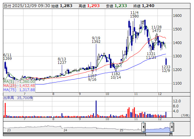 【材料】ミロクが大幅反落、25年10月期は米関税響き減損計上し一転最終赤字幅拡大で着地へ