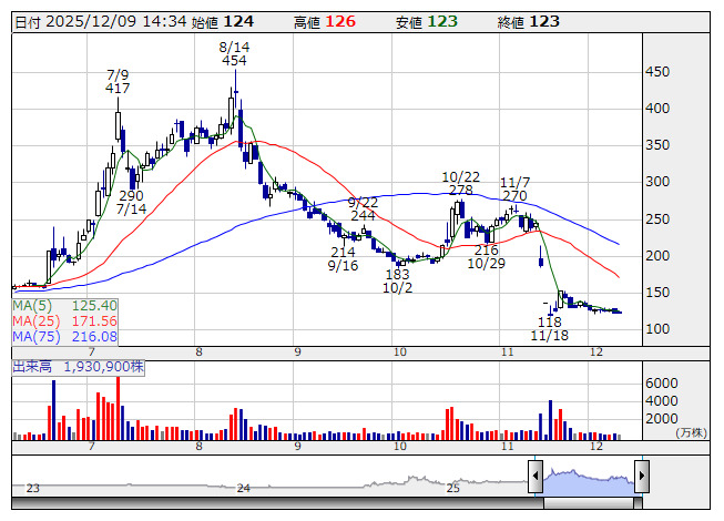 フルッタ <日足> 「株探」多機能チャートより