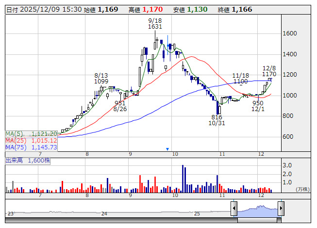 2025年12月09日16時06分 【材料】アップコンが民間工事に関する大型案件を受注 アップコン <日足> 「株探」多機能チャートより アップコン<5075>がこの日の取引終了後、民間工事に関する大型案件を受注したと発表した。受注したのは沈下修正工事で受注金額は1億500万円。来年3月の施工完了を予定している。なお、26年1月期第4四半期及び27年1月期第1四半期に売り上げ計上する予定だが、業績への影響は精査中としている。 出所:MINKABU PRESS