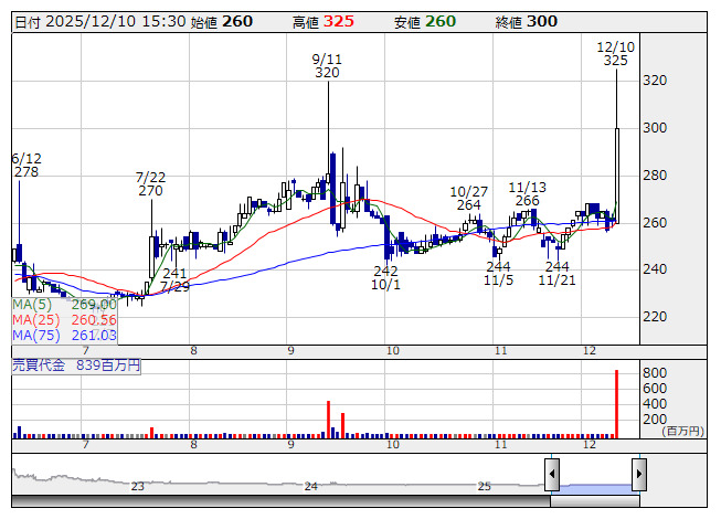27. <4192> スパイダー 321 ( +9.2%) 595 ( 11.0倍)