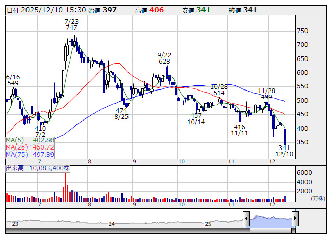 【材料】本日のランキング【値下がり率】 (12月10日)