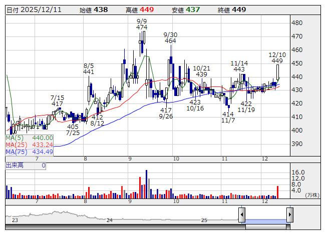 ■サンアスタ <4053> 464円 +20 円 (+4.5%) 09:07現在