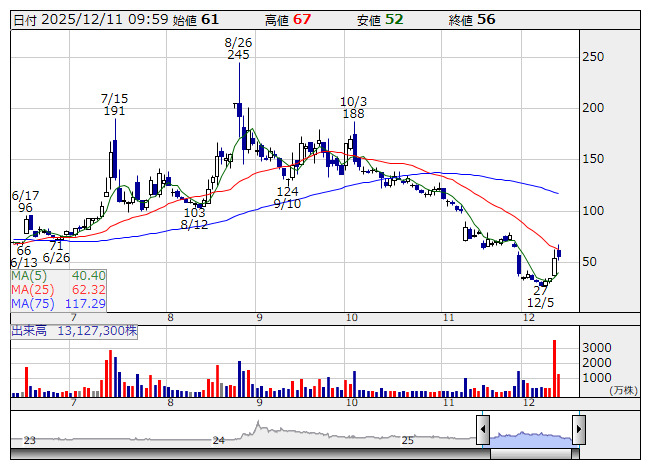 ピクセル <日足> 「株探」多機能チャートより■財務省 : 12月11日受付