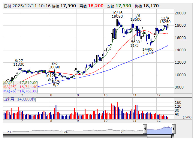 6590>が3日ぶりに反発した。同社は11日、次世代半導体パッケージ向けのパネル用ウェットスピン装置を開発したと発表。今後の収益貢献を期待した買いが株価の支えとなったようだ。多様な材料に対して高度な洗浄・エッチング技術が必要となる次世代半導体パッケージの製造工程において、大型パネル向けに展開することを目的として開発した装置で、サーバーや生成AIに使用されるGPU(画像処理半導体)の「2.XD製品」を製造する際、大型の角型ワークに対し高度かつ高性能なウェット処理を実現。開発から研究までカバーする柔軟なユニット構築と、量産展開に対応できる点なども特長とする。