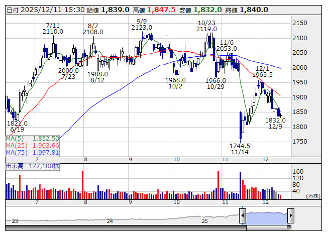 センコーHD <日足> 「株探」多機能チャートより■財務省 : 12月11日受付