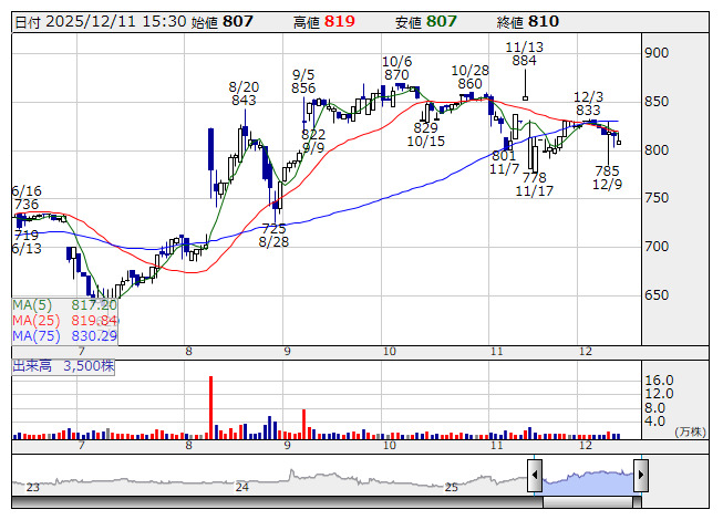 プラッツ <日足> 「株探」多機能チャートより■財務省 : 12月11日受付