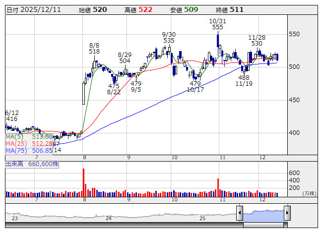 システナ <日足> 「株探」多機能チャートより【注目スケジュール】