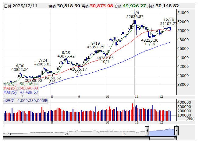 日経平均 <日足> 「株探」多機能チャートより「シカゴ日経平均先物(CME)」(11日)