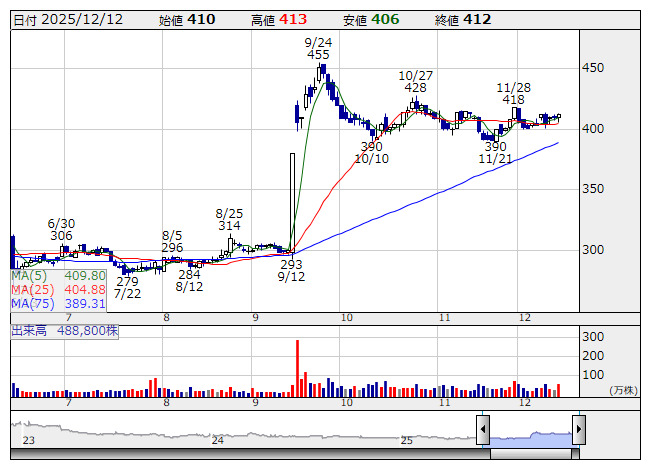 エニグモ <日足> 「株探」多機能チャートより●今週の高利回りランキング【ベスト50】